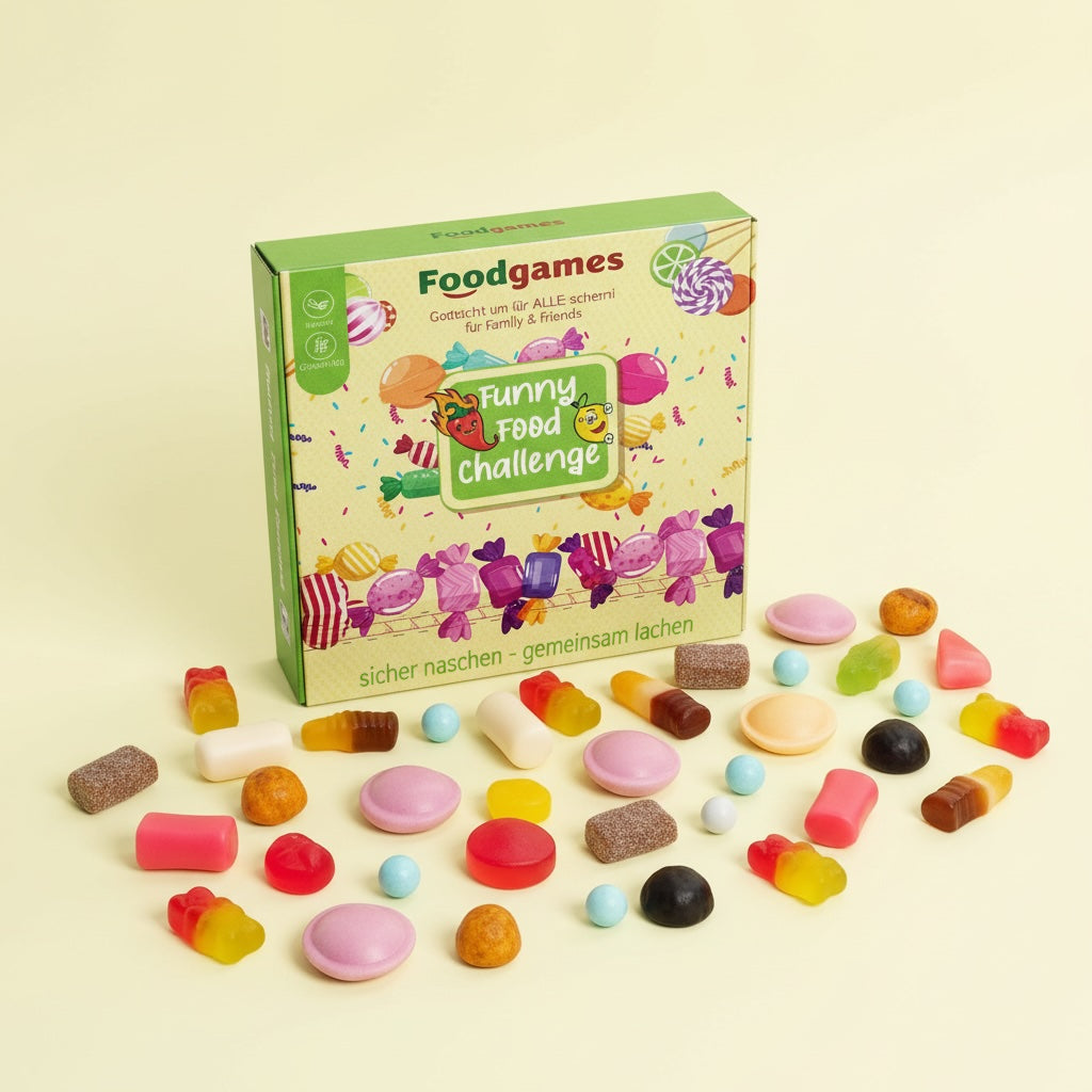Die Funny Food Challenge ist kein Snack, sondern ein Erlebnis. Statt klassischer Fruchtgummis bekommst du mutige, vegane Sorten – und ein Spiel, das jedes Naschen zum Abenteuer macht.