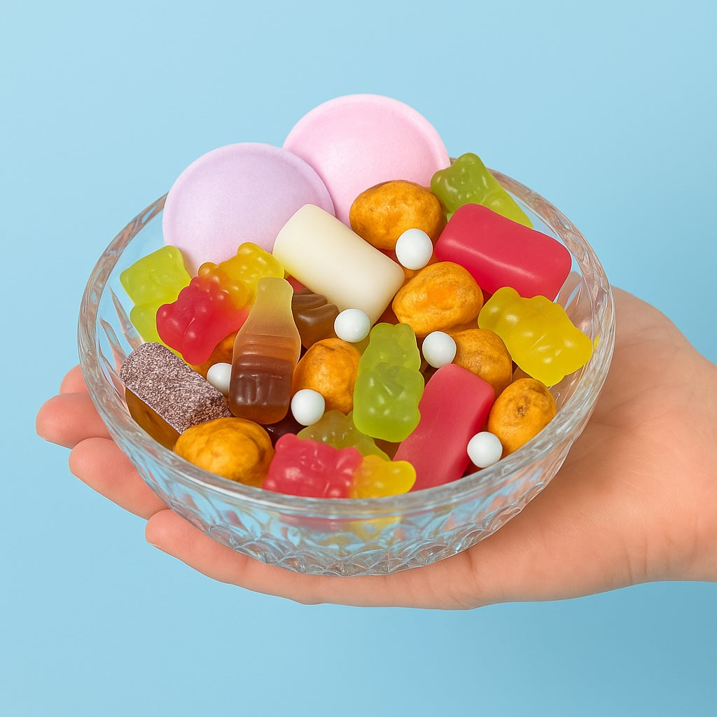Alle Leckereien sind 100 % vegan und enthalten keine tierische Gelatine – dadurch sind sie automatisch laktosefrei, schweinefrei und für alle Religionen problemlos essbar. Egal ob Party, Familie oder Schule: Bei uns können wirklich alle gemeinsam genießen und sicher naschen.
